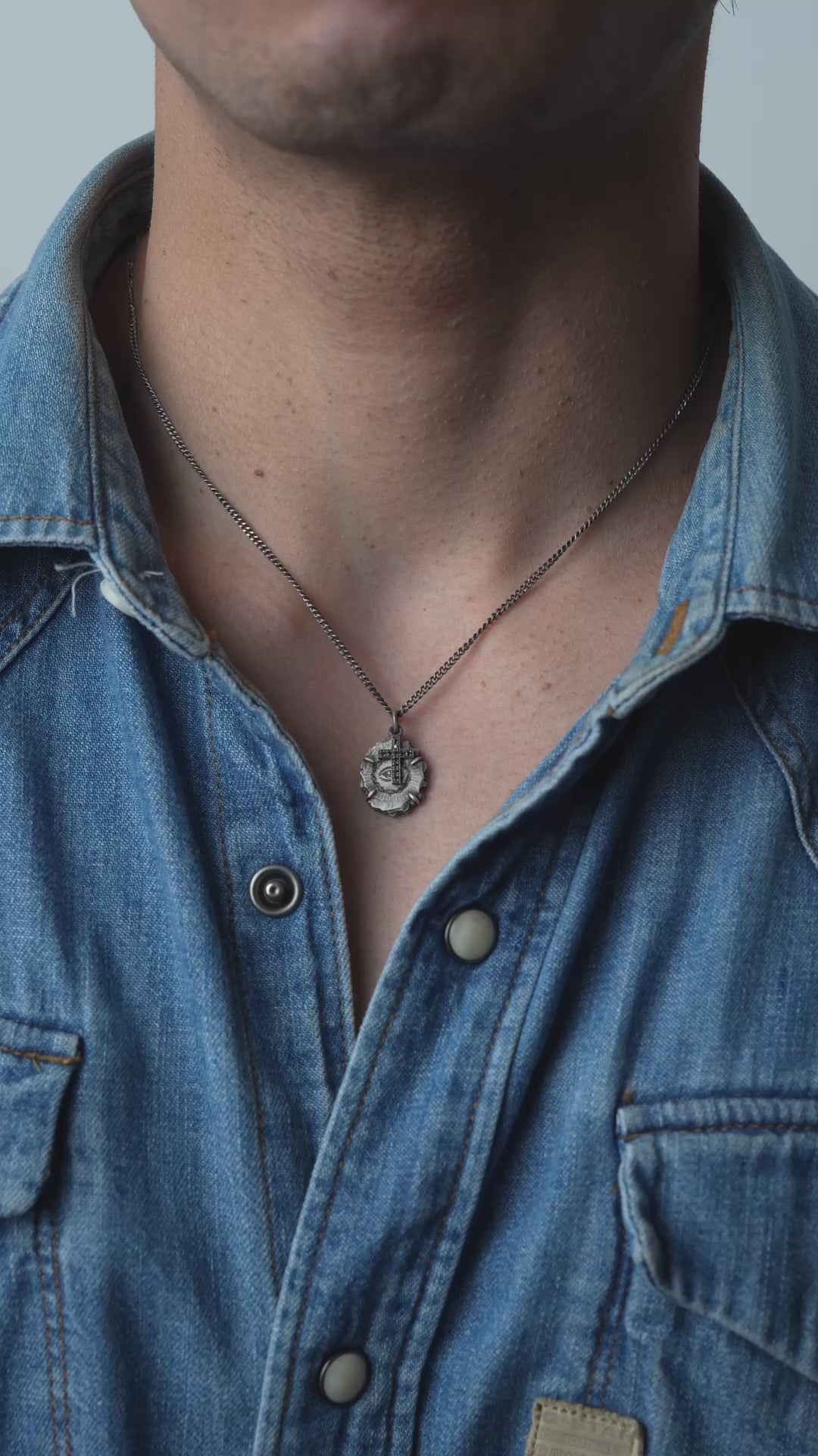 Blackened Silver Crown Of Thorns Necklace With Black Diamond Cross