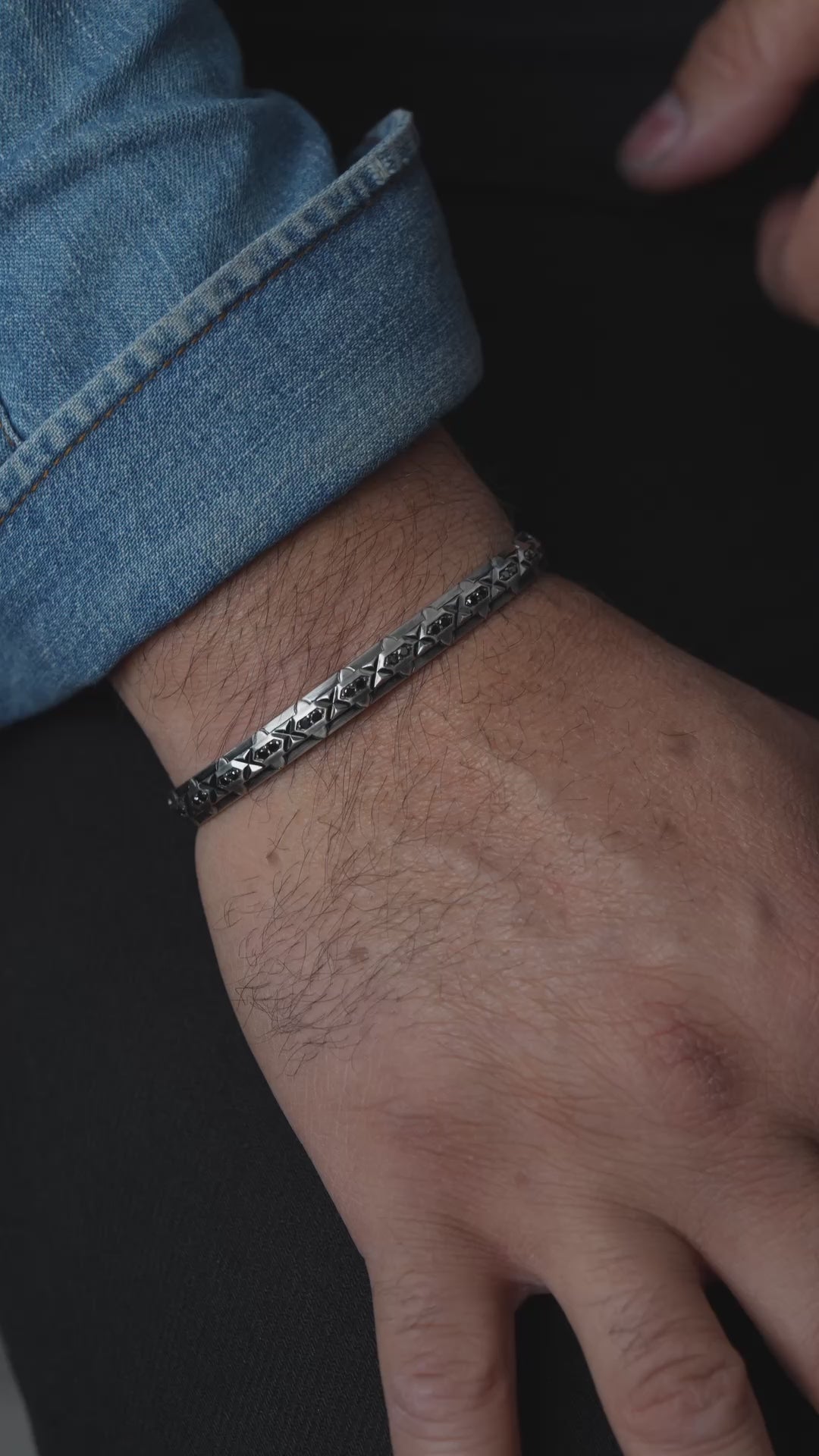 Blackened Silver & Black Diamond Cuff Bracelet -