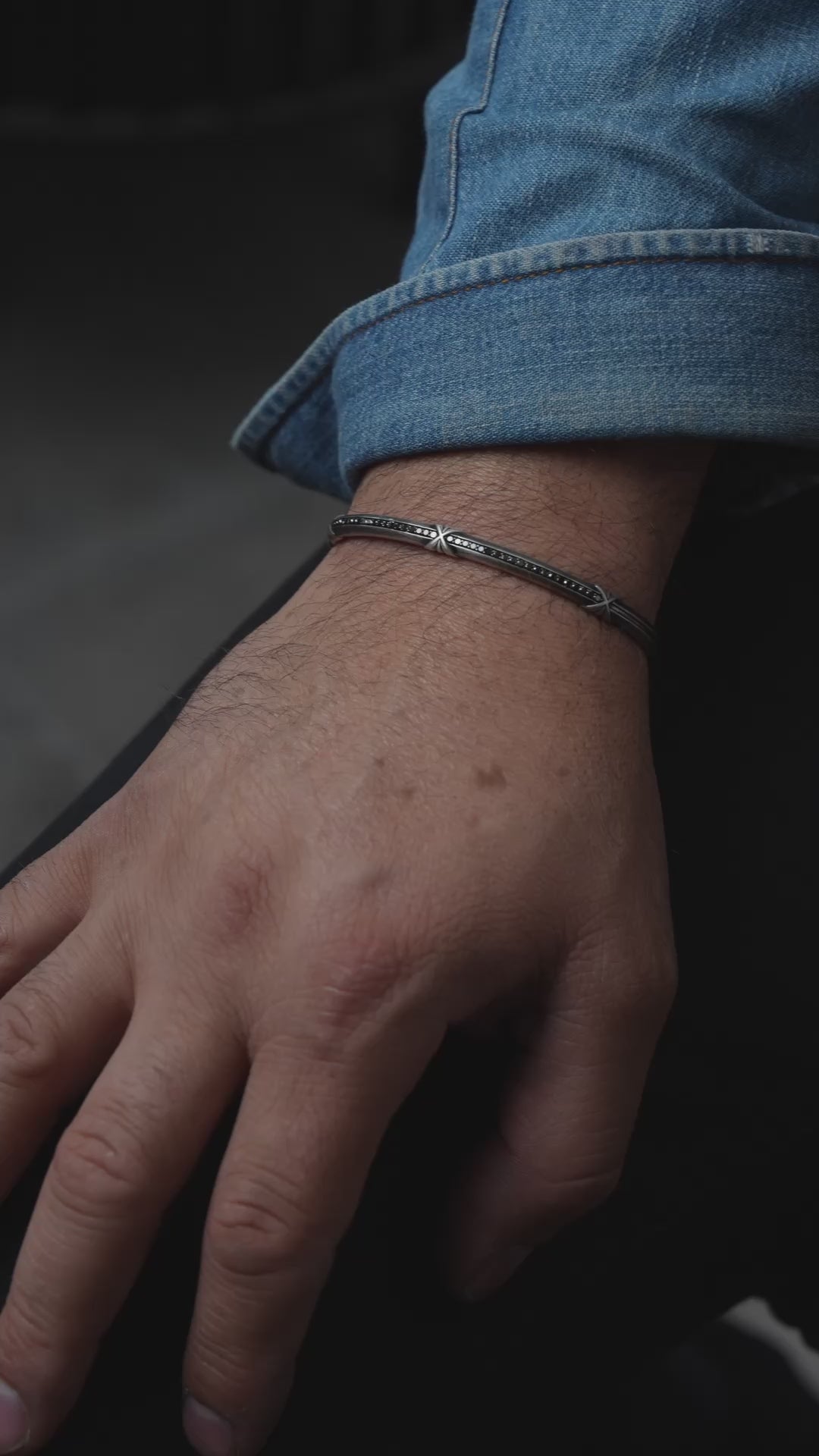 Celebrate your unique style with this contemporary blackened silver and black diamond arrow cuff, crafted to stand out and made with Australian precision. The dark, mysterious gemstones paired with the sleek silver finish embody both sophistication and edge—perfect for anyone who loves bold, luxe accessories with a modern twist.